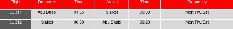 Flight schedule to Sialkot International Airport (all times local):